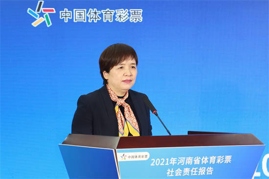 河南省体育彩票管理中心主任王海新介绍了《2021年河南省体育彩票社会责任报告》相关内容。她表示,“促进群众体育和竞技体育全面发展,加快建设体育强国”,在新时代新征程上,体育彩票作为助力体育事业发展的重要组成部分,我们使命在肩。未来,河南体彩将立足以人民为中心的发展理念,牢记中国体育彩票作为国家公益彩票的定位,坚持依法治彩,把责任先导放在优先战略地位,进一步推进河南体彩责任彩票建设工作,为体育强省和体育河南建设贡献河南体彩人的力量。